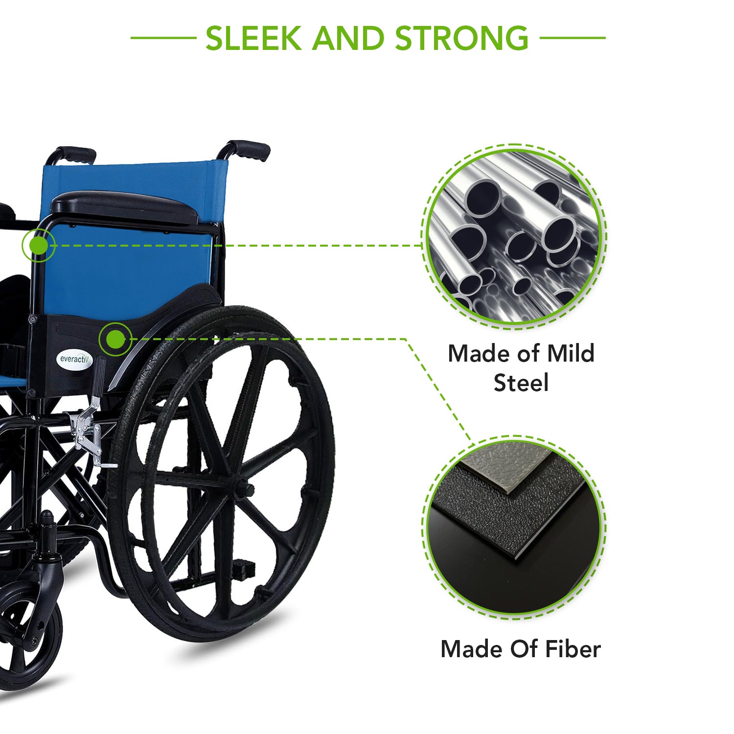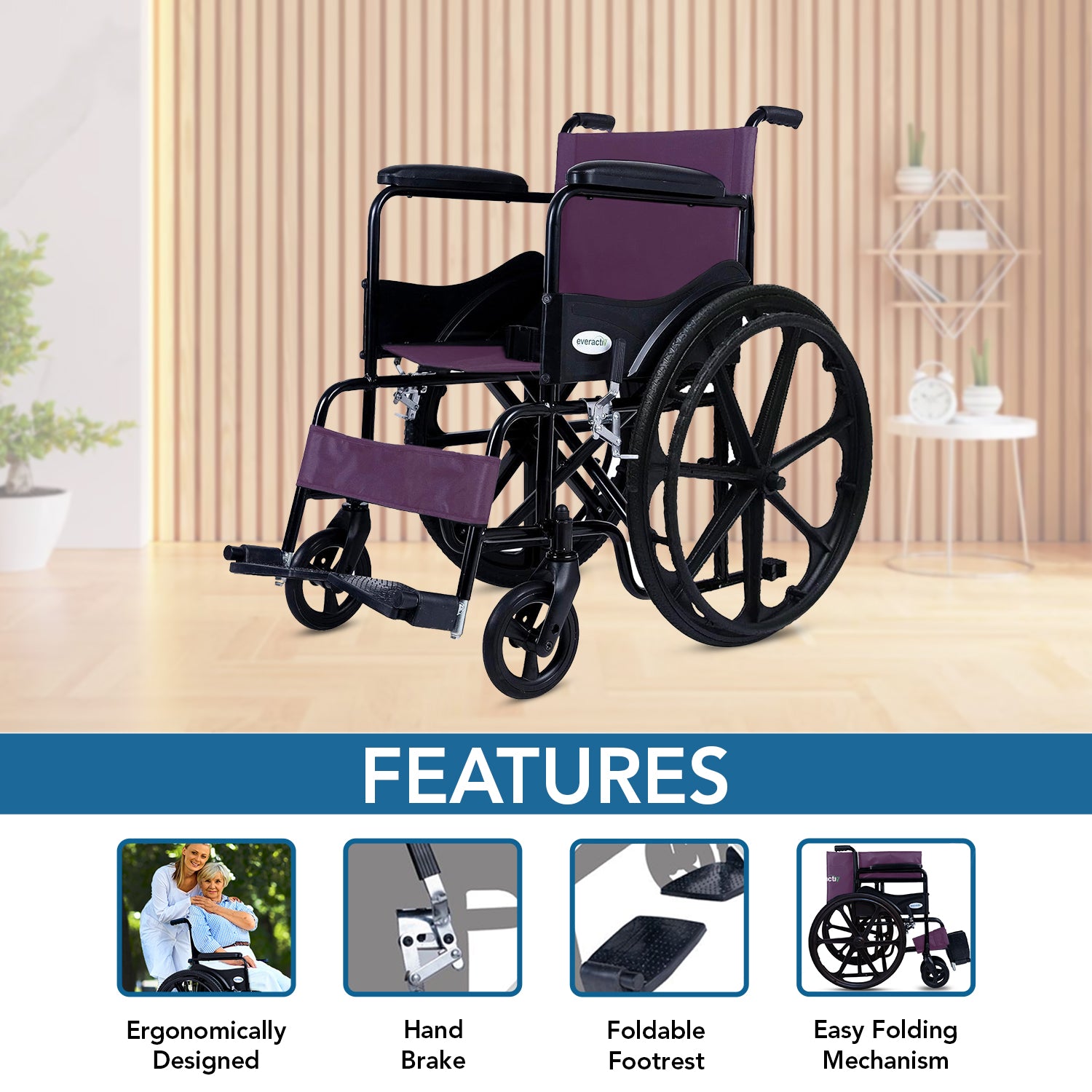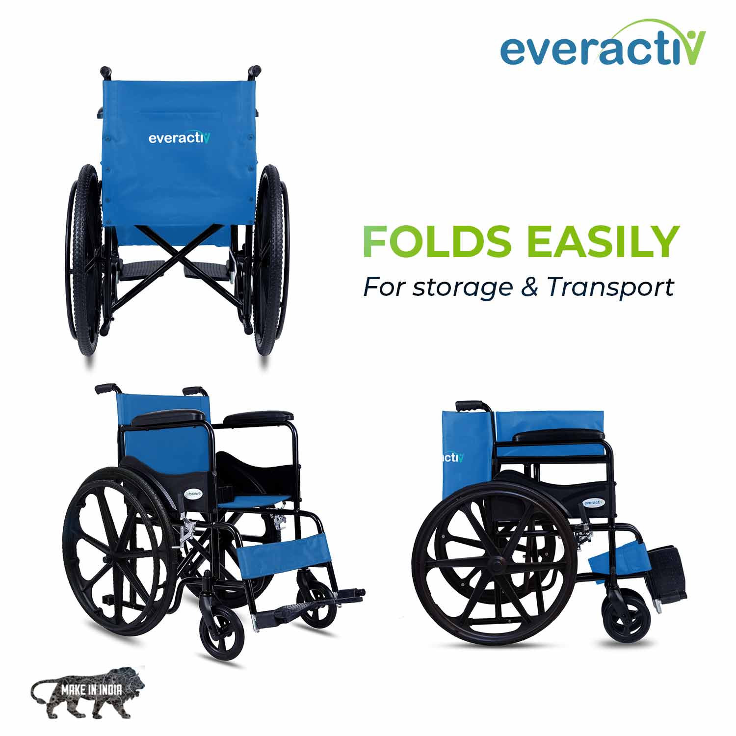 Everactiv Everyday Economy Foldable Wheelchair with Safety Seat belt, Weight Bearing Capacity 120 kg, Sturdy Frame and Easy Foldable Mechanism