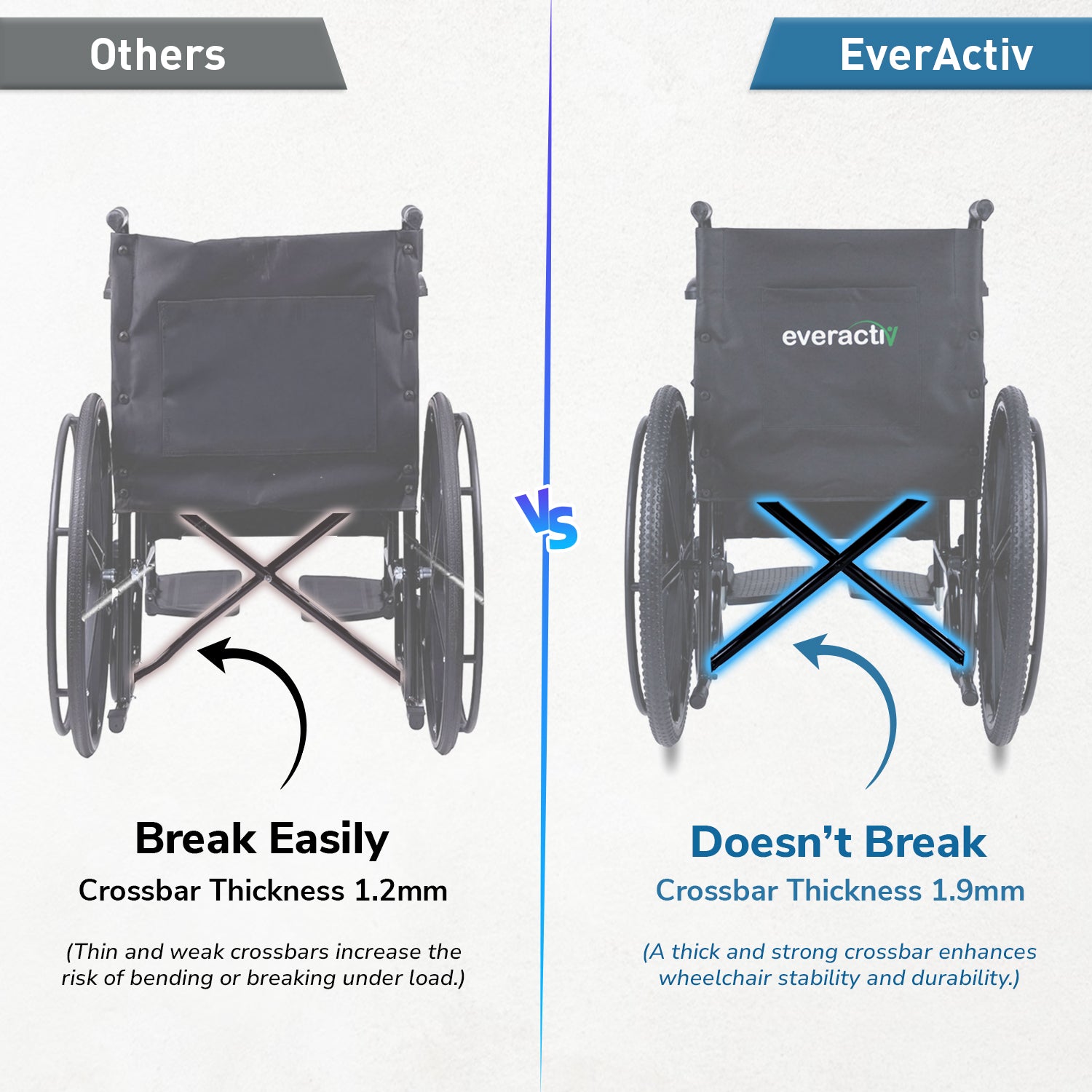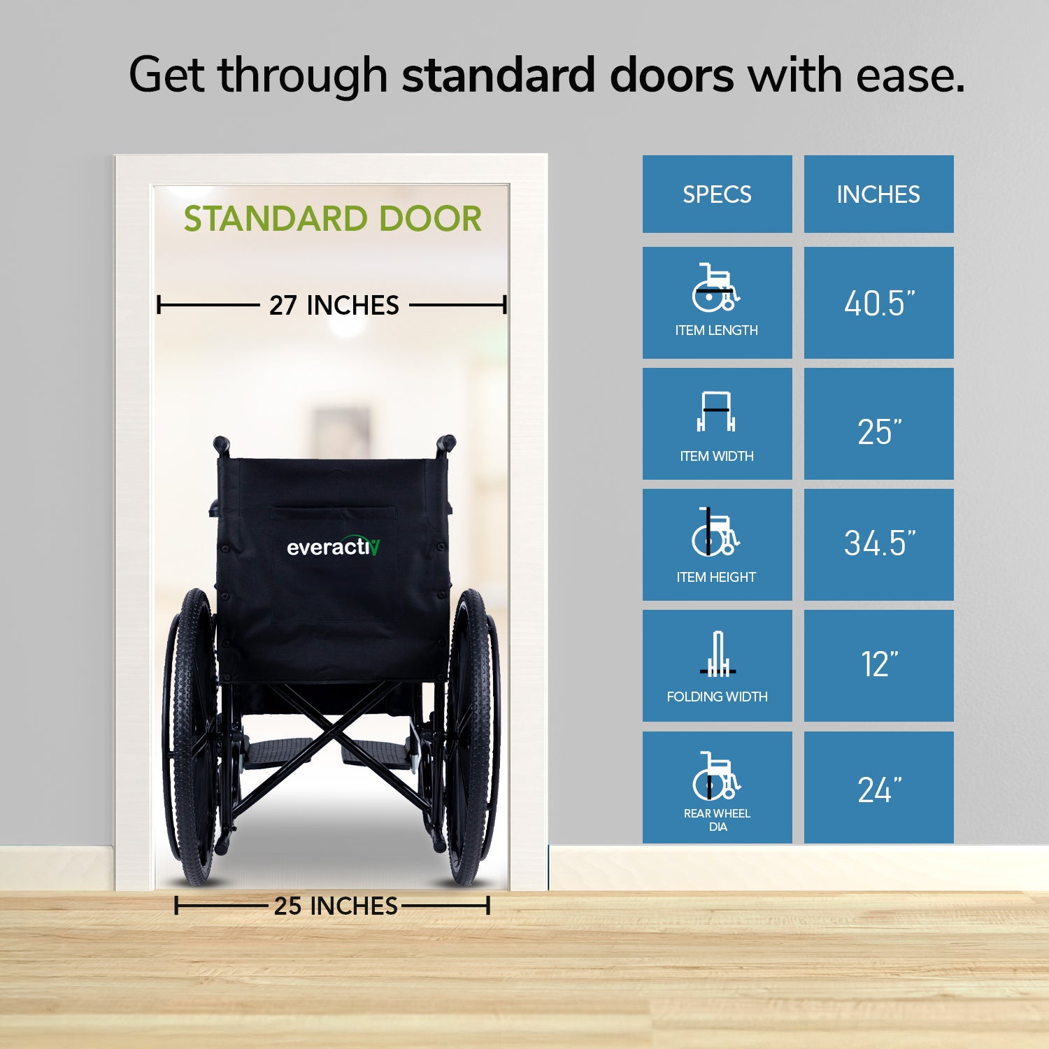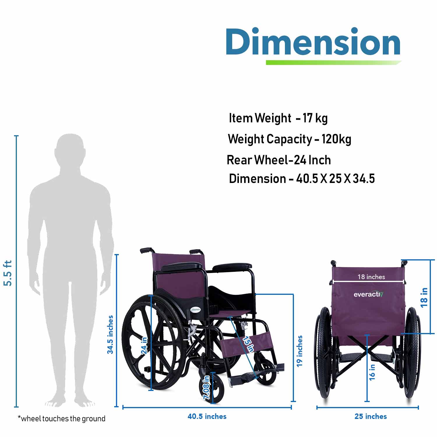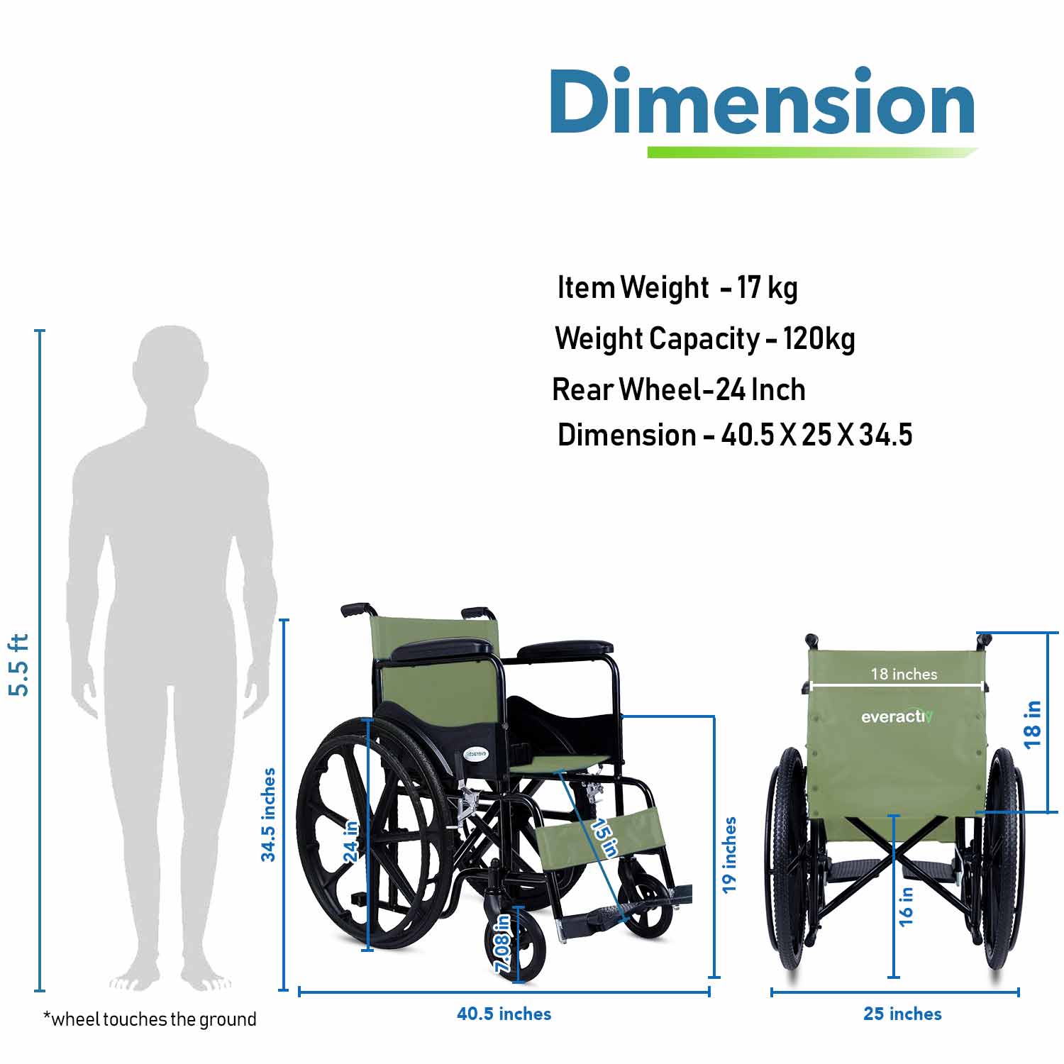 Everactiv Everyday Economy Foldable Wheelchair with Safety Seat belt, Weight Bearing Capacity 120 kg, Sturdy Frame and Easy Foldable Mechanism