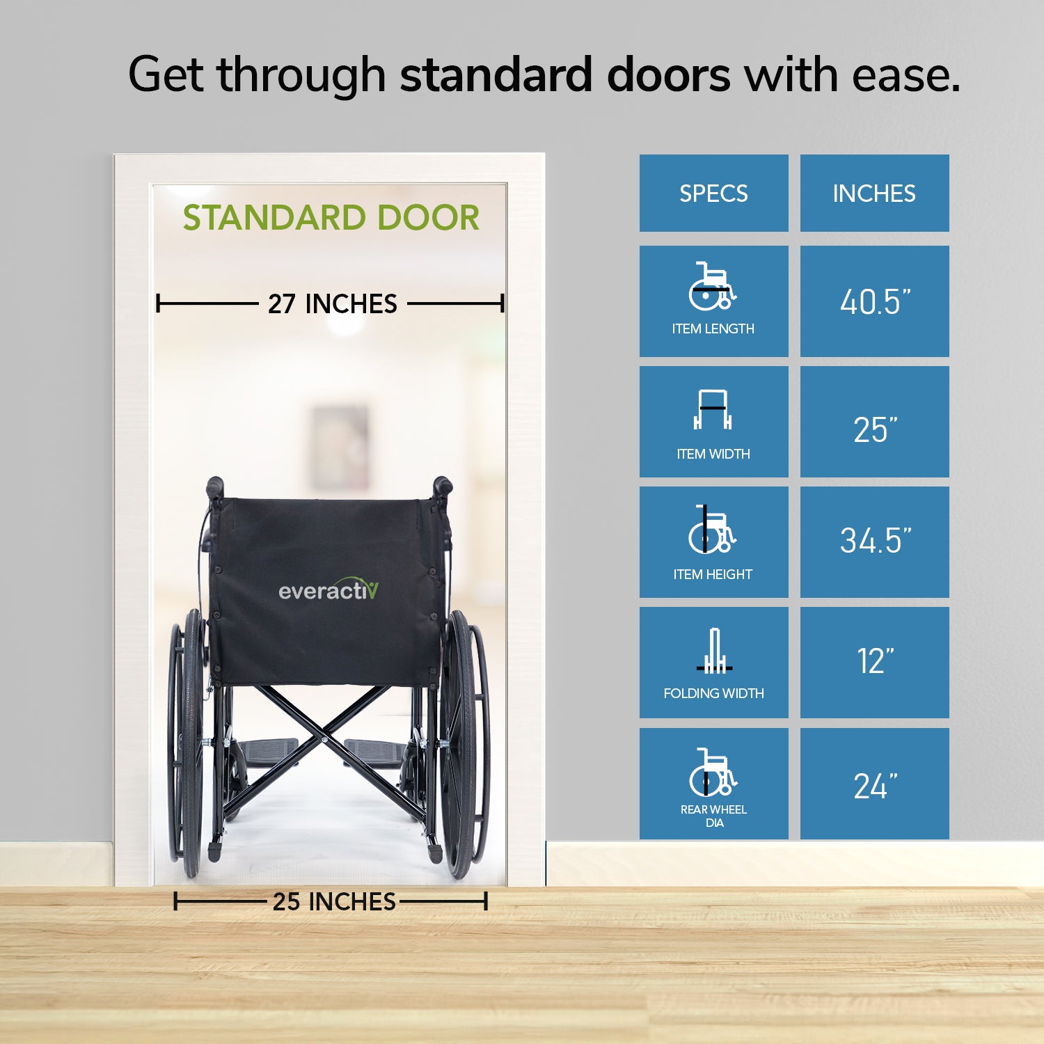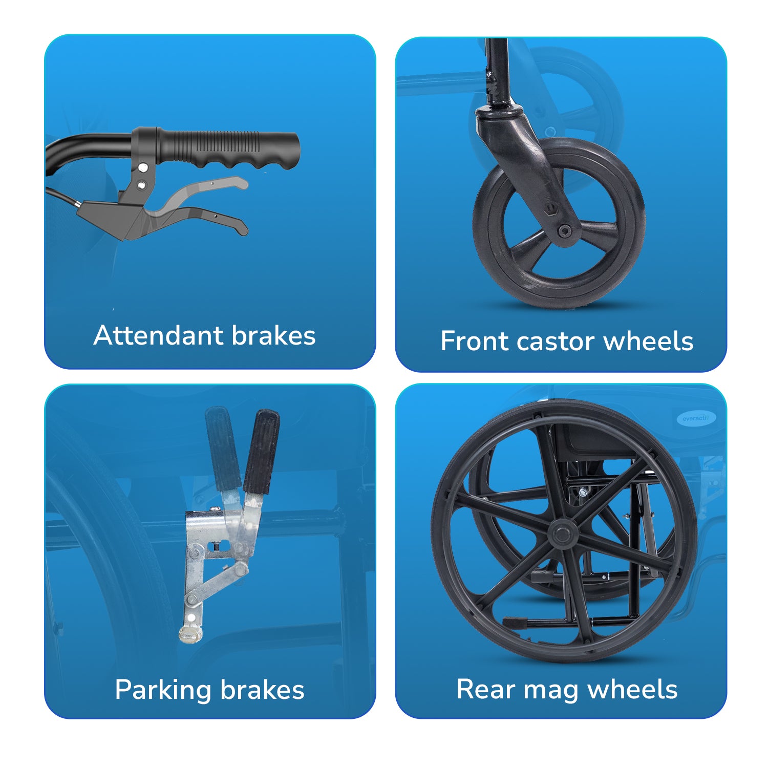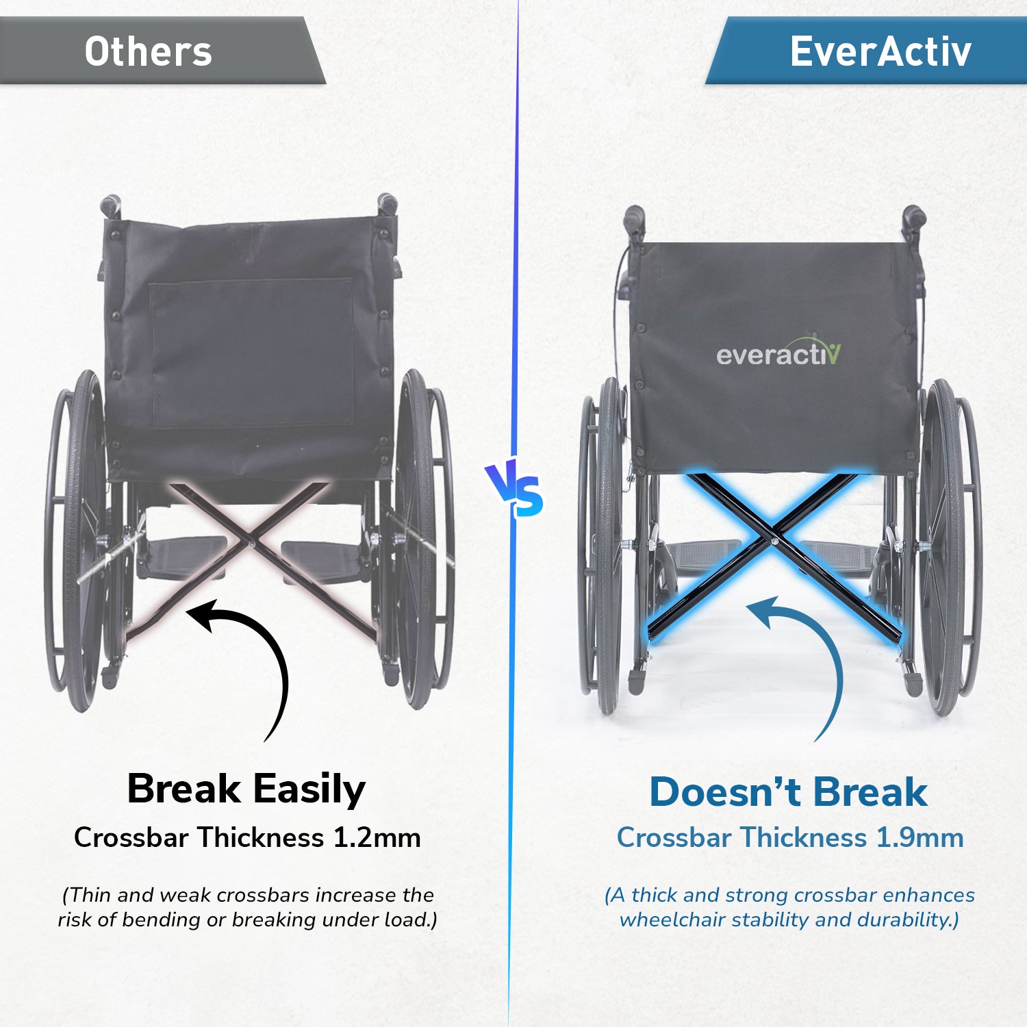 Everactiv Everyday Economy with Attendant Brakes Foldable Wheelchair with Safety Seat belt, Weight Bearing Capacity 120 kg, Sturdy Frame and Easy Foldable Mechanism