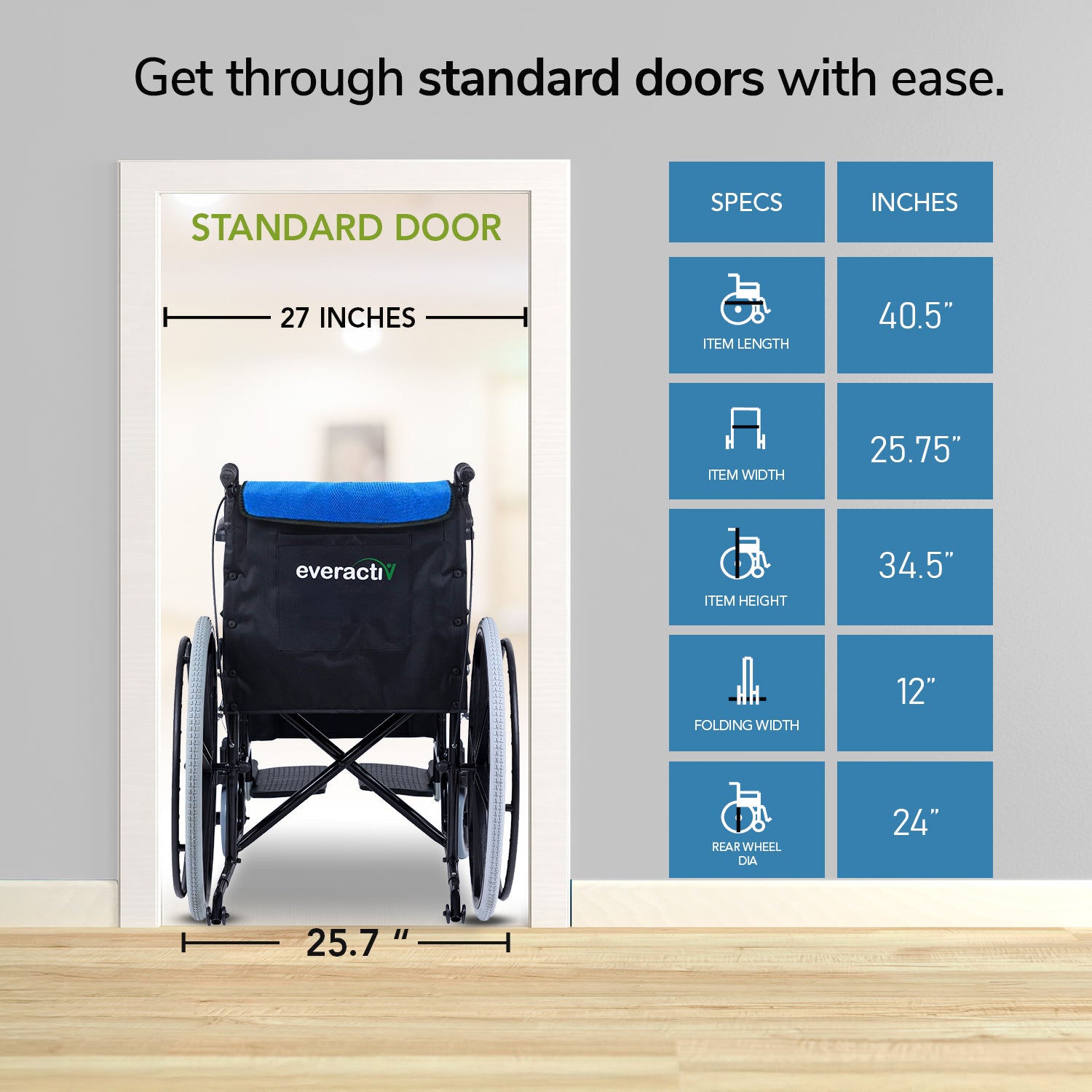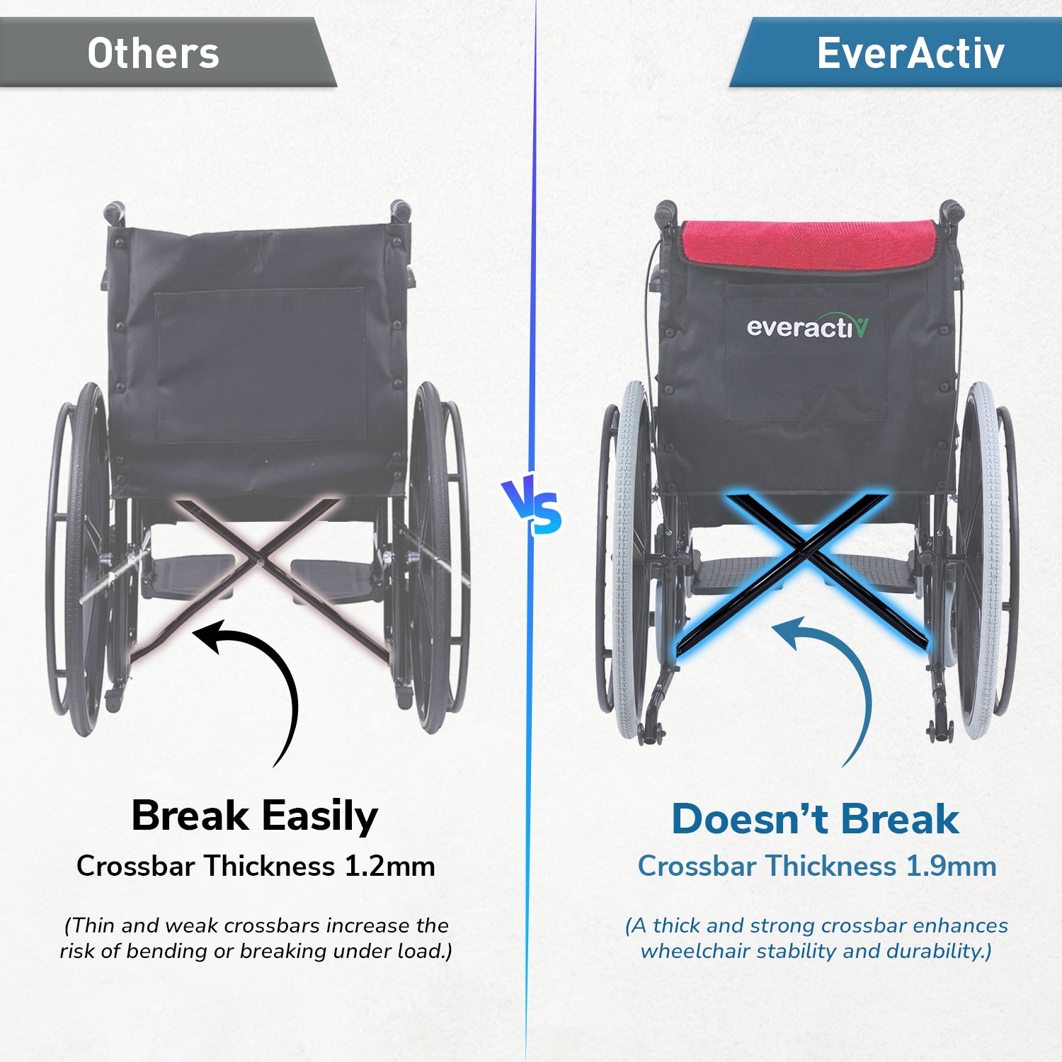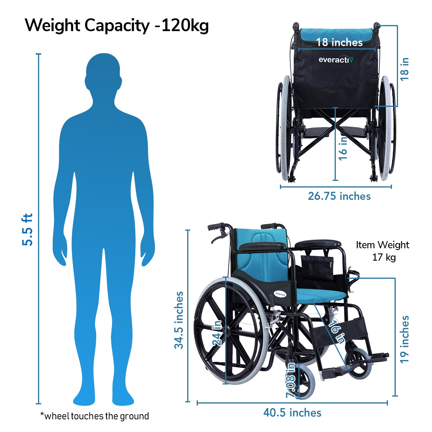 Everactiv Everyday Premium Foldable Wheelchair with 2 Extra Seats, 6 Wheels & Brakes for extra safety, Side Pouch, Bottle Holder